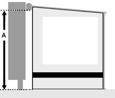 U kiest de zijwand door de bovenafgebeelde hoogte (A) te meten en de uitval te kiezen. Montagehoogte (A) = afstand tussen de onderkant van de luifelcassette en de grond. Deze is geschikt voor een luifel met de volgende afmetingen.