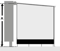 U kiest de zijwand door de bovenafgebeelde hoogte (A) te meten en de uitval te kiezen. Montagehoogte (A) = afstand tussen de onderkant van de luifelcassette en de grond. Deze is geschikt voor een luifel met de volgende afmetingen.